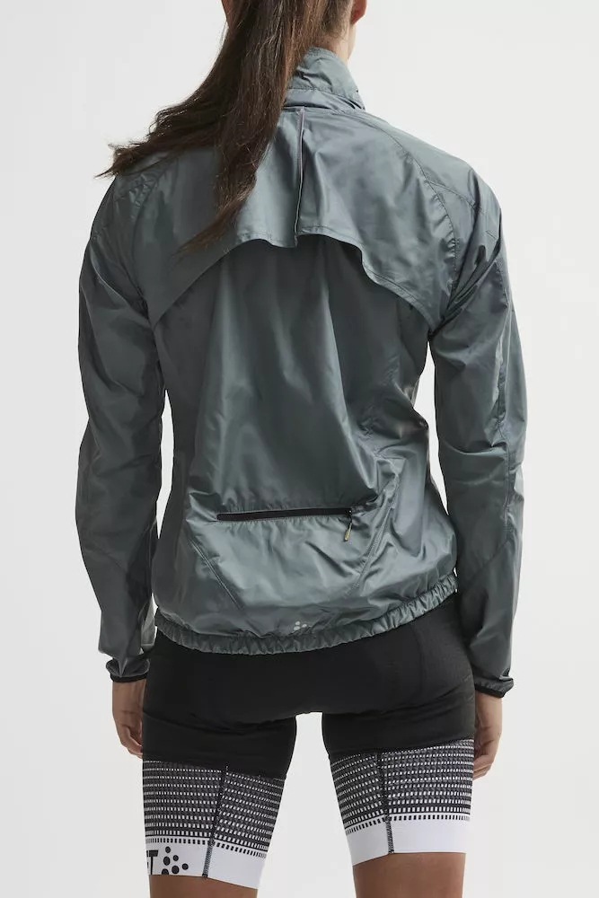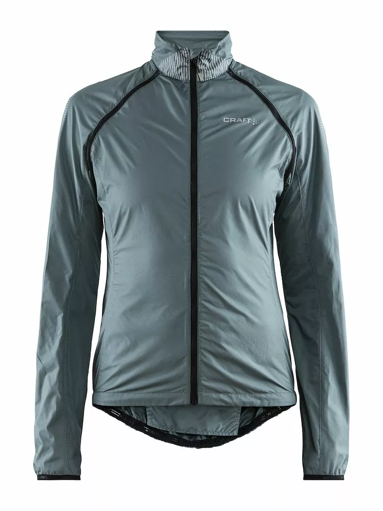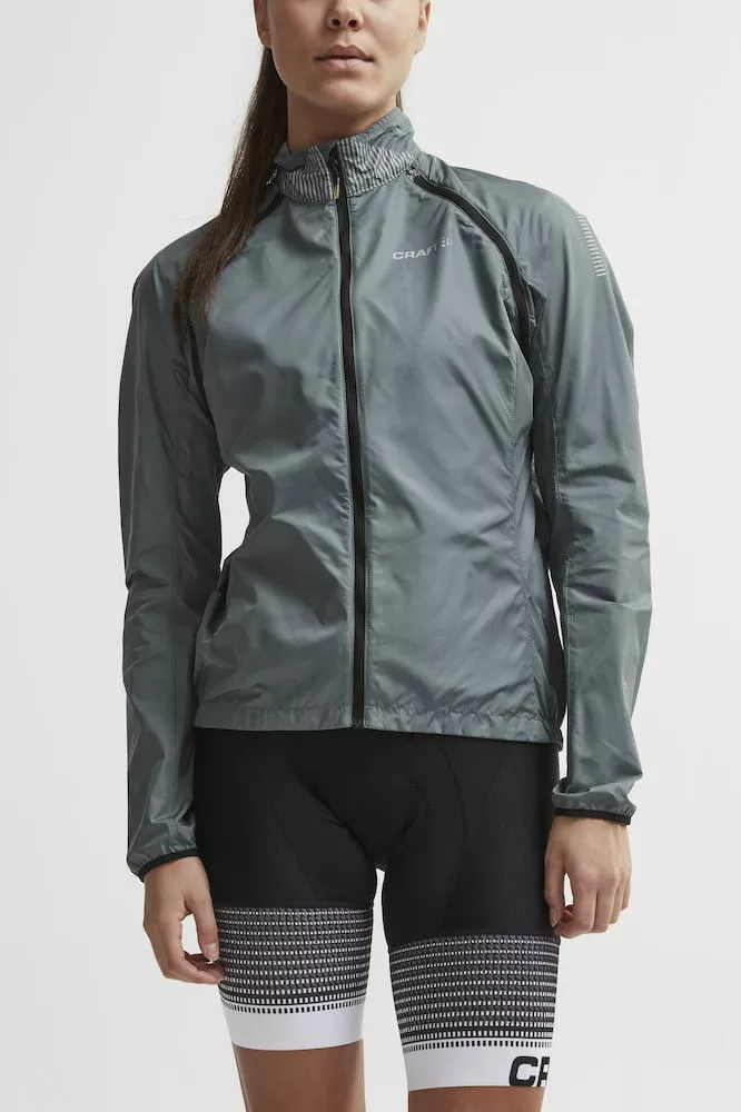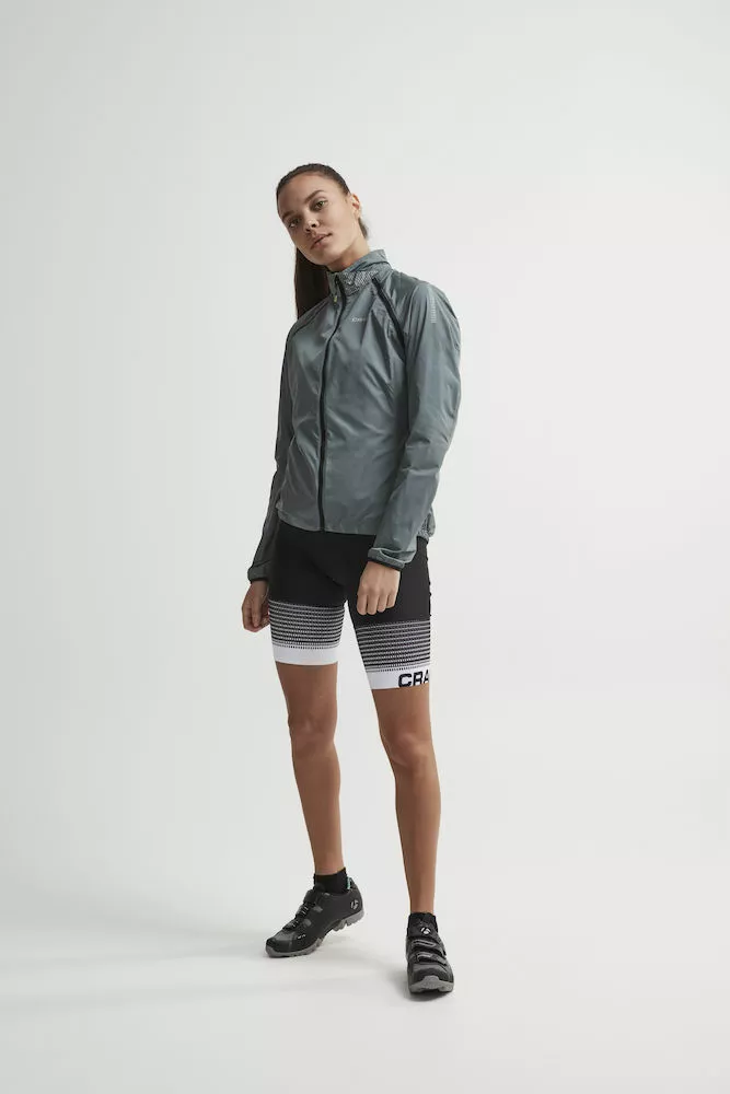 Craft vindtæt og vandafvisende cykeljakke med aftagelige, ergonomisk formsyede ærmer til kvinder.